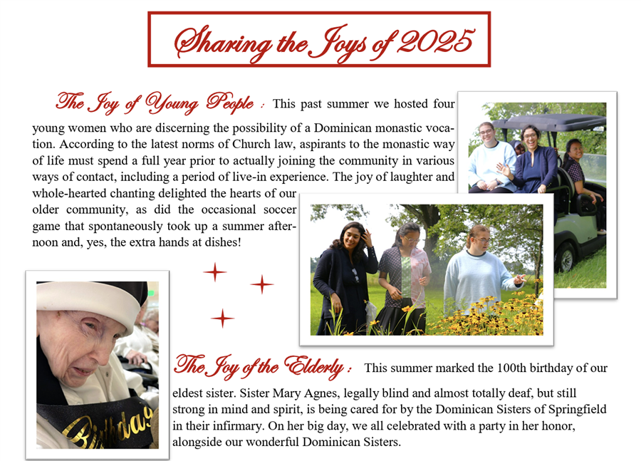Sister Anna Marie Pierre, OP / Wednesday, December 31, 2025 / Categories: Monastic Life, Newsletter Archive Attached you will find our recap of 2025 and the many joys we shared from the past year. Print Tags 2025 Documents to download Newsletteer XMAS 2025 X14 (.pdf, 1.06 MB) - 10 download(s)